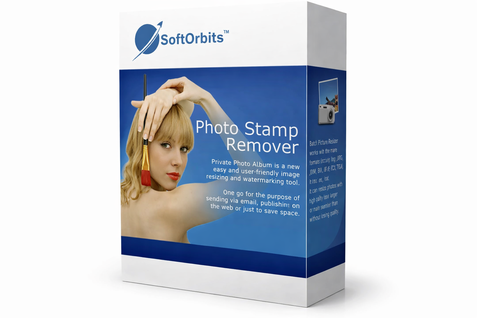 SoftOrbits Photo Stamp Remover — это не универсальный редактор на все случаи, а специализированная программа, заточенная под очень конкретную задачу: убрать с изображения всё, что мешает восприятию кадра. В первую очередь речь идет о водяных знаках, датах, времени, текстовых надписях, штампах, логотипах, мелких пометках и отдельных нежелательных объектах. Программа работает по понятной схеме: пользователь открывает фото, отмечает проблемную область вручную или запускает автоматический поиск, после чего Photo Stamp Remover восстанавливает фон на месте удаленного элемента. Именно эта узкая специализация и делает ее удобной: не нужно разбираться в слоях, масках, сложных кистях и длинных цепочках ретуши.