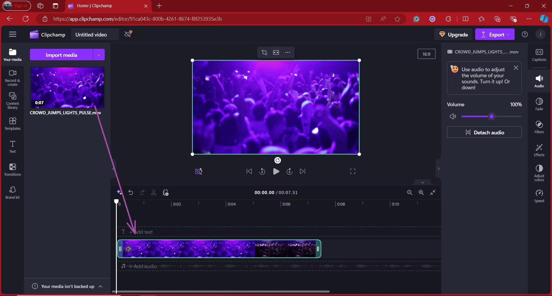 Добавьте музыку и настройте громкость.
