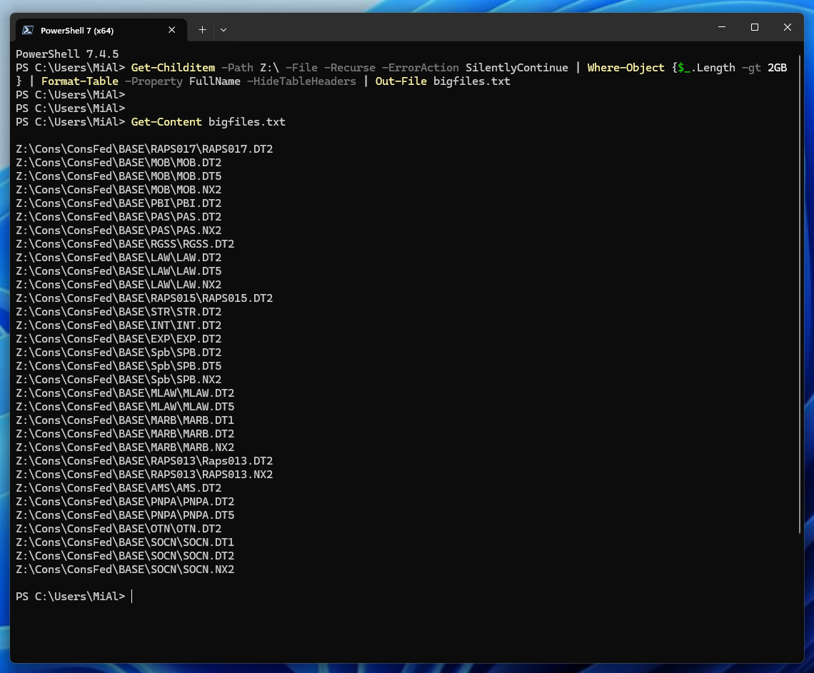 Для точного списка крупнейших файлов запускаете PowerShell.