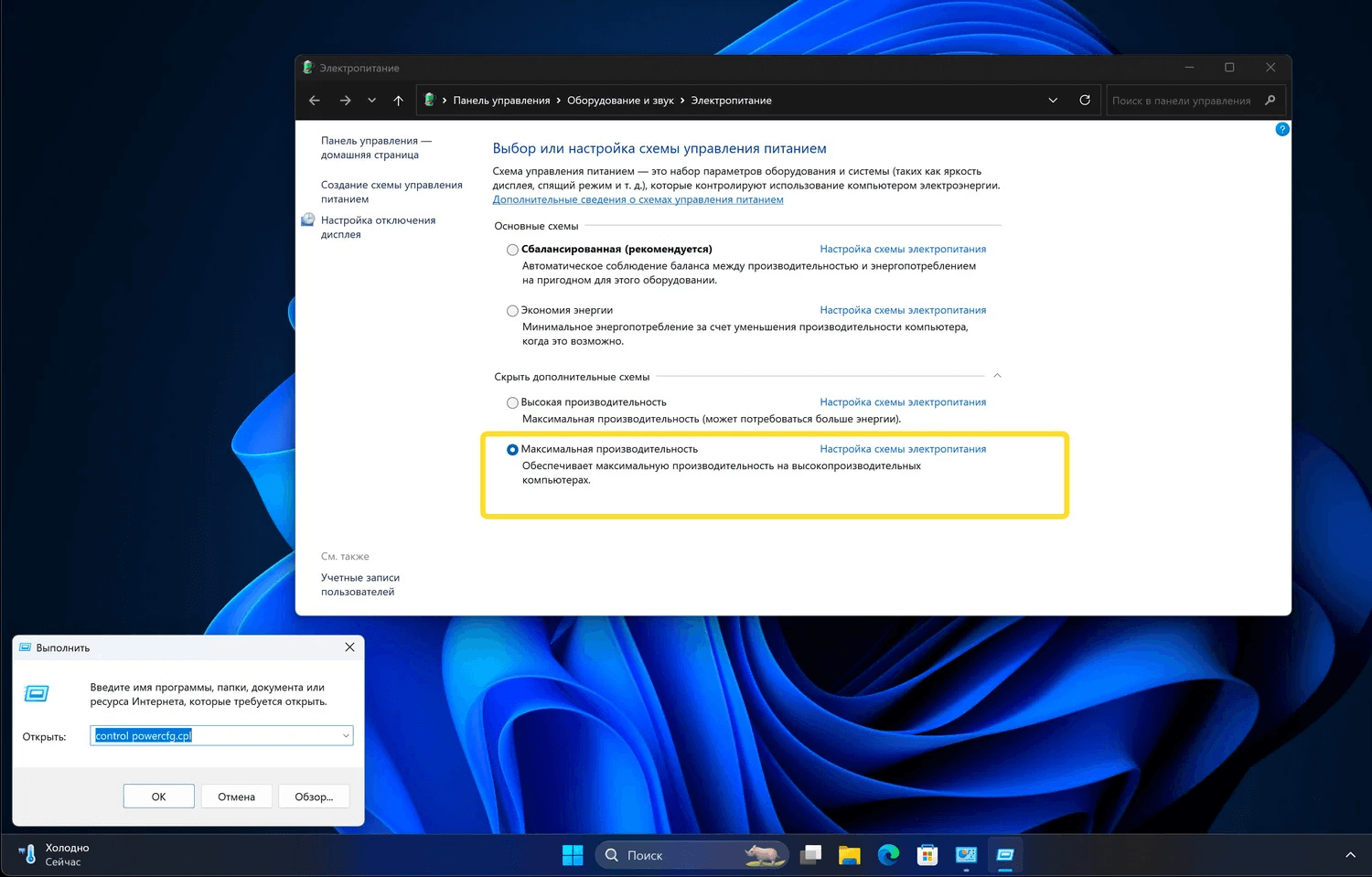 Управление питанием процессора → минимальное состояние обычно оставляют 5%, максимальное 100%.