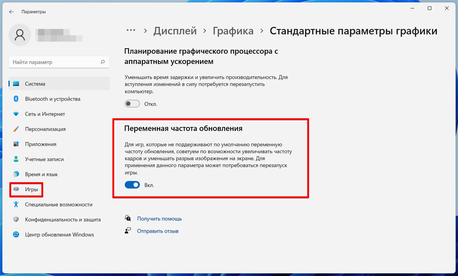 при наличии — Переменная частота обновления (Variable refresh rate).