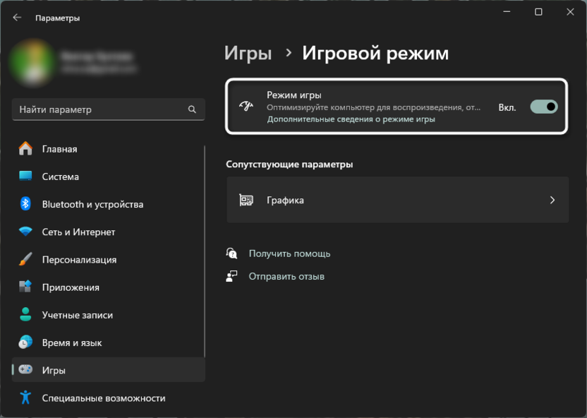 Игровой режим перераспределяет приоритеты в пользу игры и снижает влияние фоновых задач. Это базовая настройка, с которой имеет смысл начинать.