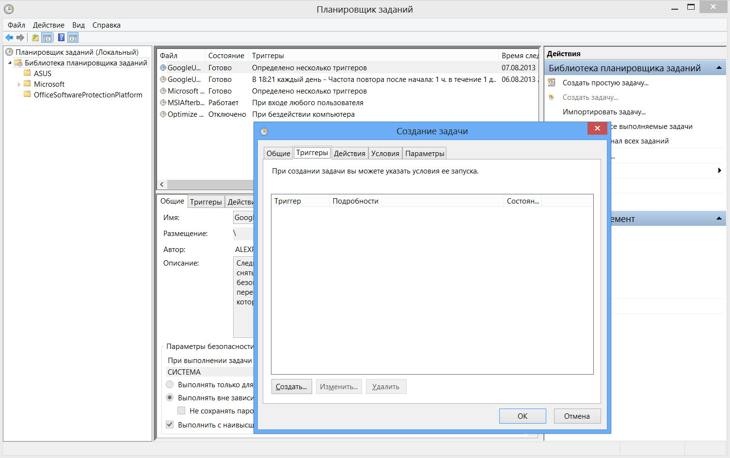 Это «правила запуска» по триггеру: при входе в систему, при запуске компьютера, по расписанию, при событии. Программа может не числиться в автозагрузке, но стабильно стартовать из Планировщика. -