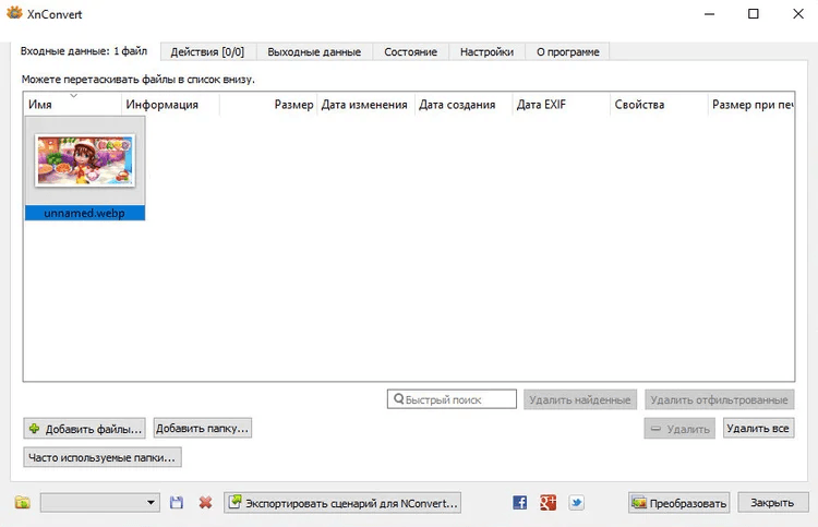 Главная сила XnConvert — пакетная логика. Пользователь не открывает один кадр, долго правит его и только потом экспортирует. Здесь мышление другое: вы добавляете серию файлов, задаете набор действий и запускаете обработку всей подборки.