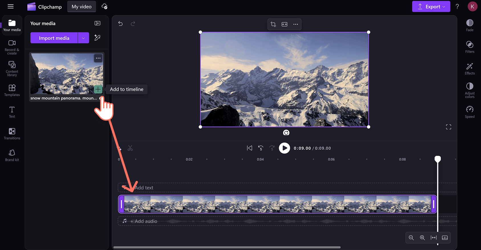 Дождитесь, пока видео появится в редакторе.