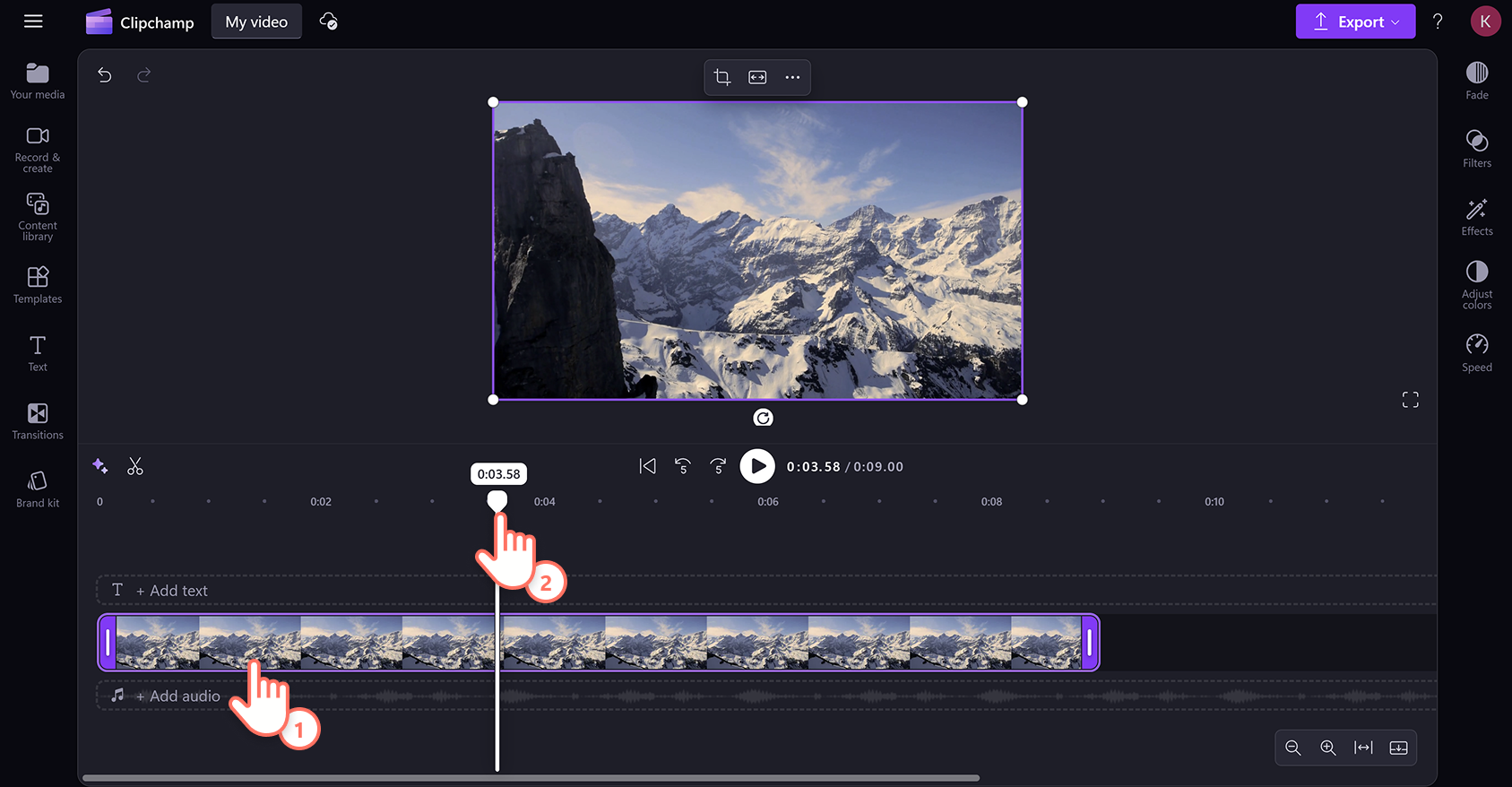Еще один сильный момент — понятная работа с загрузкой медиа. Сначала добавляете файл, потом размещаете его на таймлайне, после чего начинаете разделение. Такая последовательность хорошо подходит пользователям, которым неудобны перегруженные десктопные редакторы, но уже мало обычного веб-обрезчика.