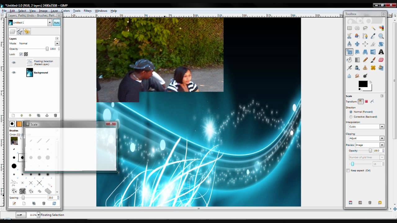 Растяните, уменьшите или переместите второй слой.