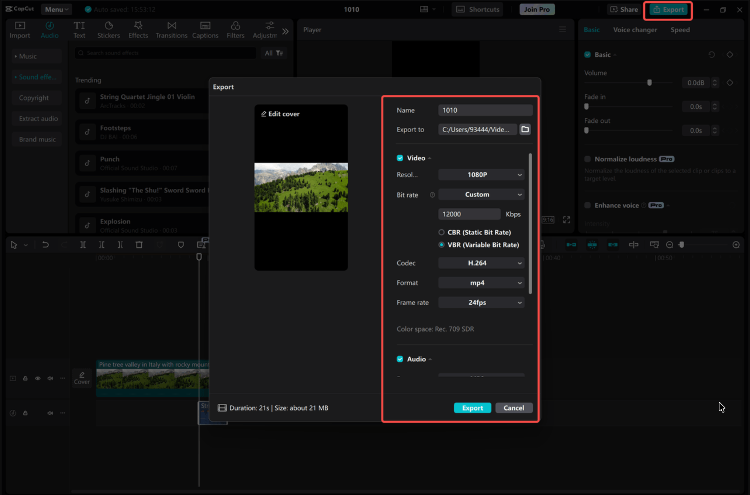 Как ускорить видео в CapCut на Windows через Normal Speed