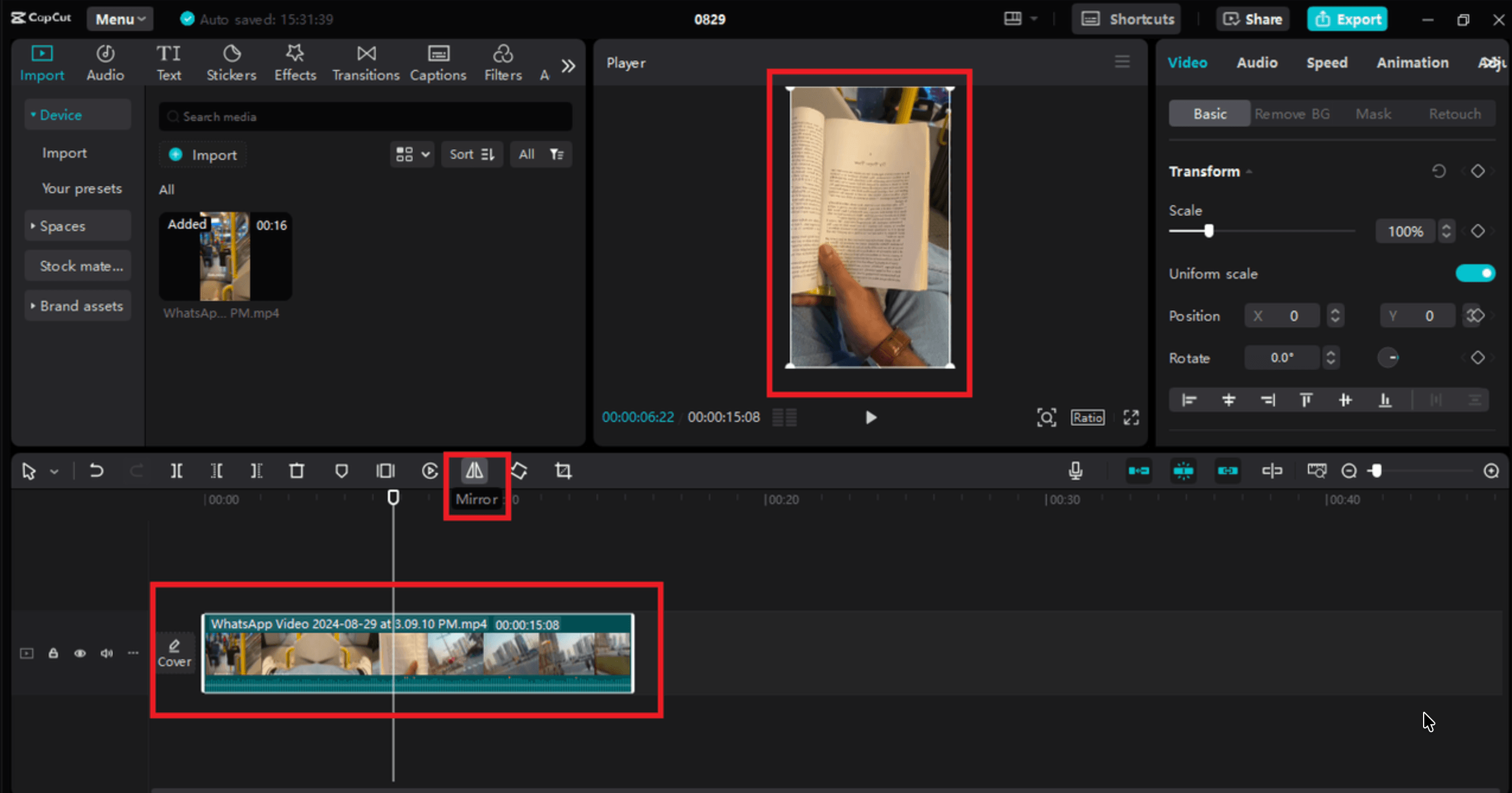CapCut на Windows подходит для коротких роликов, вертикального контента, Reels, Shorts, TikTok и быстрых проектов с титрами, музыкой и эффектами. В десктопной версии отражение выполняется через кнопку Mirror над таймлайном: нужно выделить клип, затем нажать значок зеркала. В мобильной версии используется путь через Edit, Transform, Mirror. CapCut описывает этот сценарий именно как выбор клипа на таймлайне и применение кнопки зеркала над дорожкой или внутри блока трансформации.