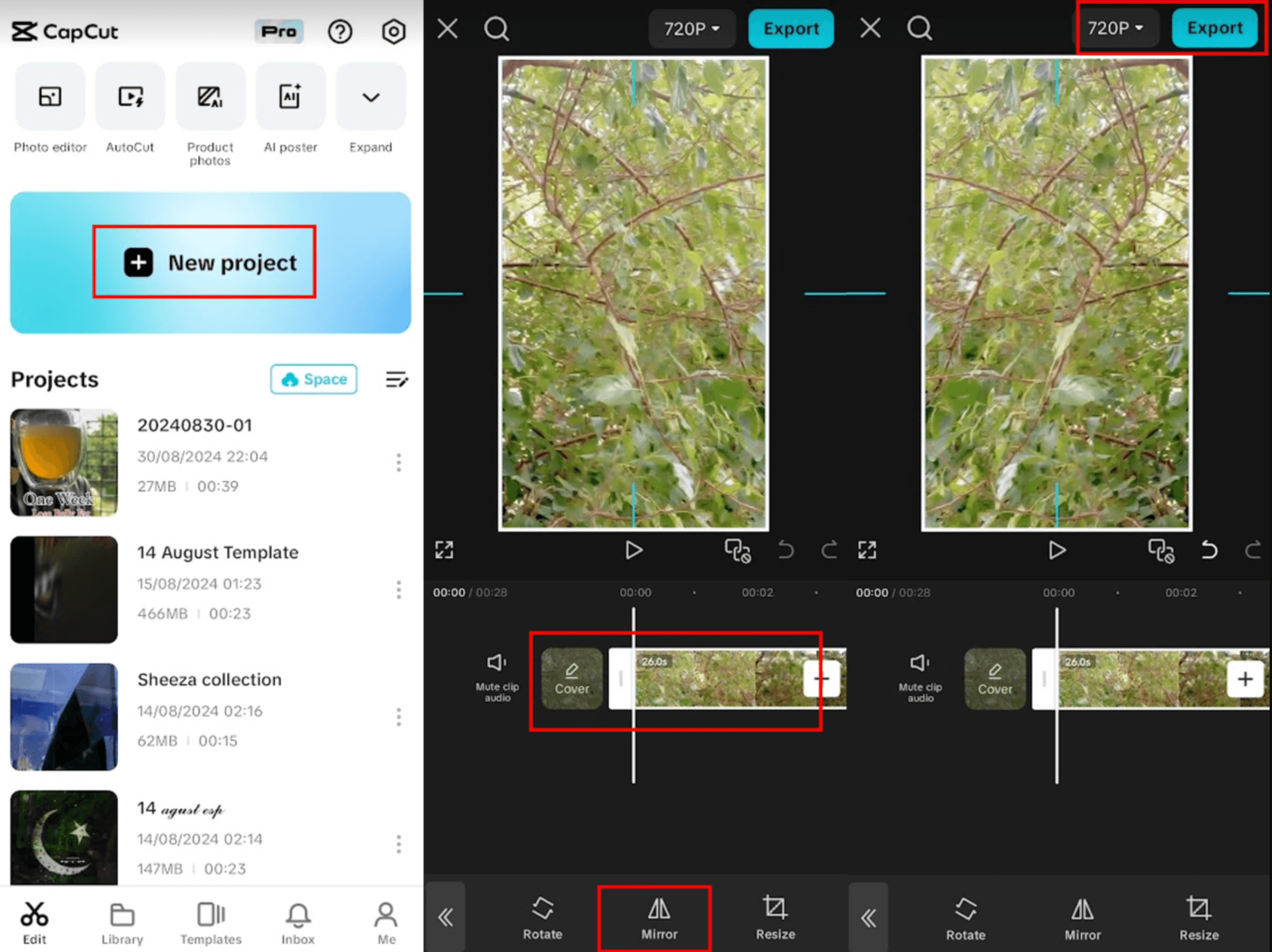 | Отразить клип в монтажном редакторе для соцсетей | CapCut | Windows, Android, iOS |
