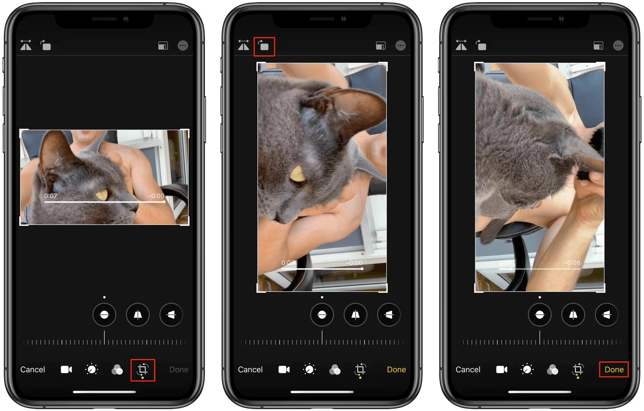 | Поворот | Весь кадр разворачивается на заданный угол | Видео снято боком или вверх ногами |