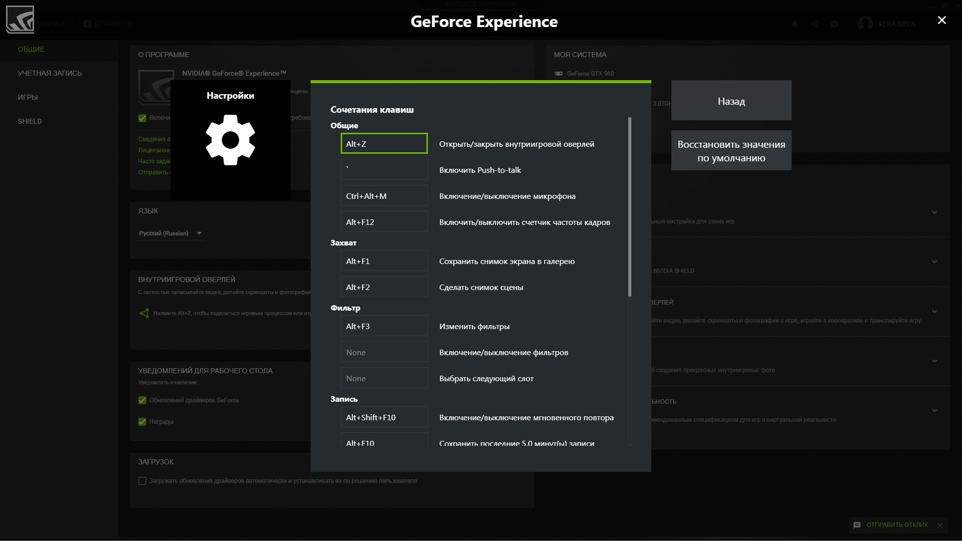 | Включён Внутриигровой оверлей | Настройки GeForce Experience → Общие | Без этого Alt + Z не работает |