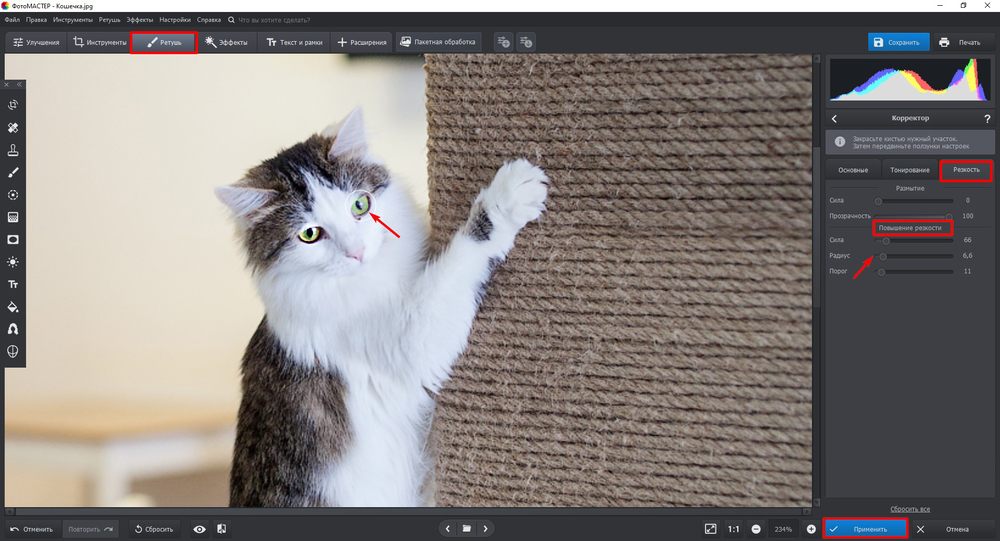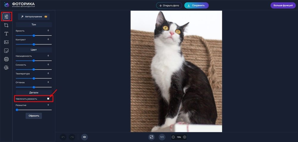 - Перейдите к инструментам повышения резкости.