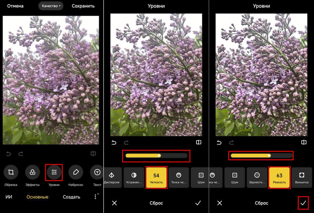 Если исходник темный или снят на высоком ISO, резкость почти всегда поднимет и шум. Значит, после повышения четкости нужно оценить: