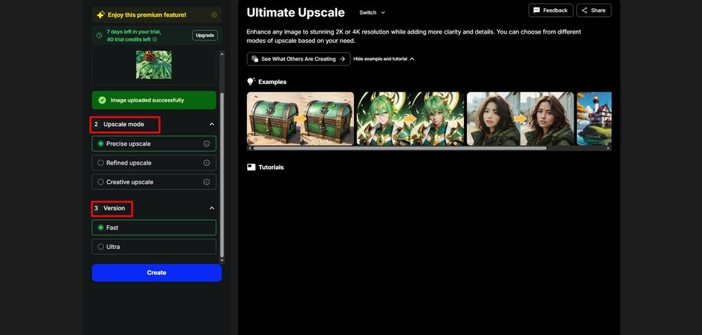 - Выберите режим улучшения.