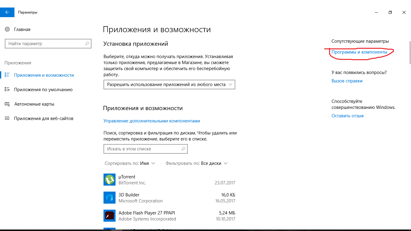 Удалить ненужные программы через Приложения и возможности.