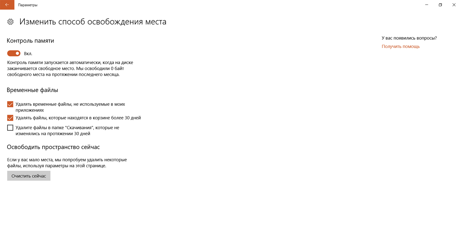 Автоматическая уборка мусора: Контроль памяти (Storage Sense)