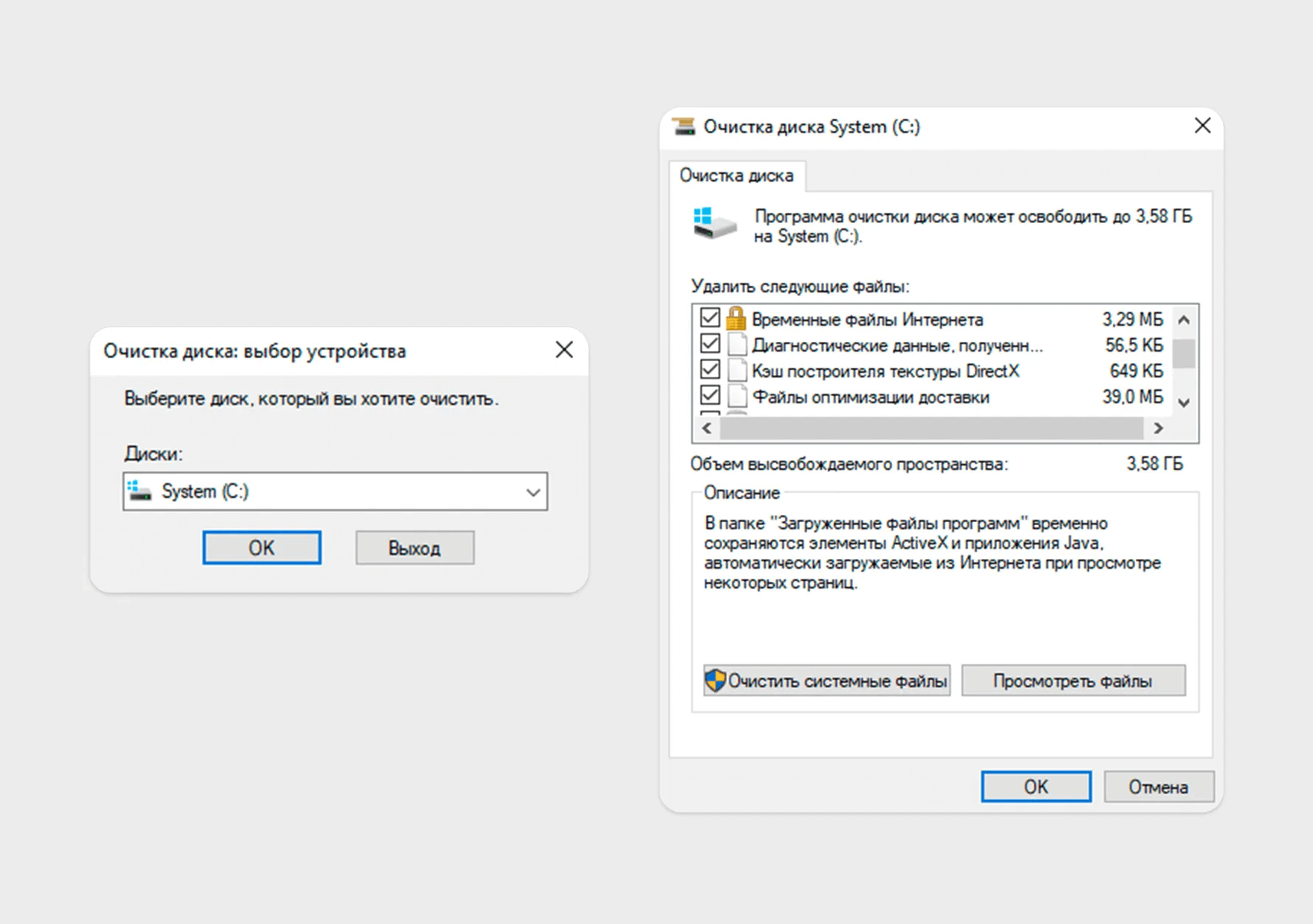 В Windows 10 инструмент Очистка диска остаётся одним из самых эффективных, особенно в режиме Очистка системных файлов.
