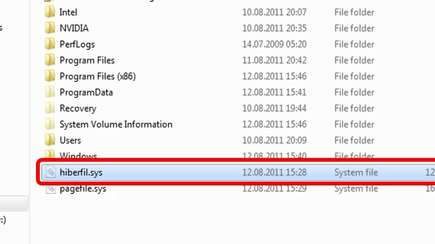 | Гибернация | C:\hiberfil.sys |