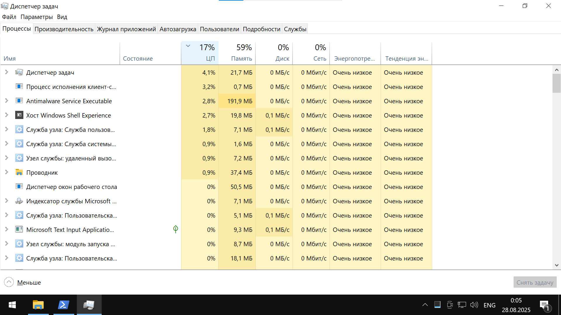 Контроль результата: исчезает постоянная нагрузка ЦП/диска неизвестными процессами, снижается фон.