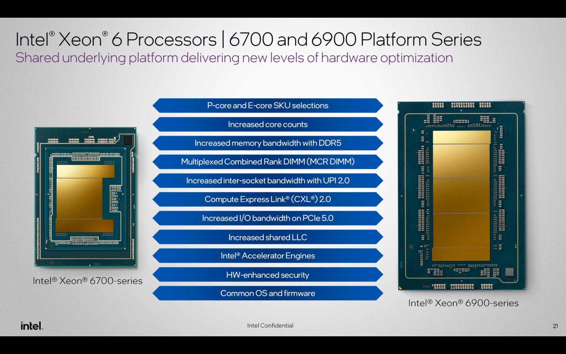 масштабирование платформы от entry-серверов (Xeon 6300) до AP-уровня с 12-канальной памятью и MRDIMM-8800 (Xeon 6900)