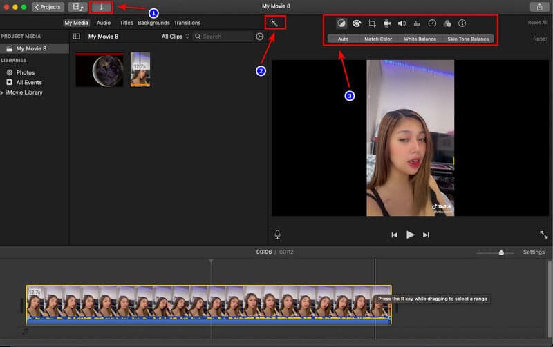 Включите Автоулучшение, когда ролик выглядит блеклым и требует быстрой коррекции.