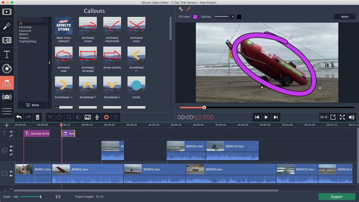 Программа особенно полезна для пользовательских задач: улучшить ролик с телефона, осветлить темное видео, сделать картинку контрастнее, убрать лишние края, собрать несколько фрагментов в один файл и подготовить результат для публикации. В интерфейсе есть разделы для файлов, титров, клипарта, переходов и эффектов, а в свойствах клипа открываются настройки улучшения изображения.