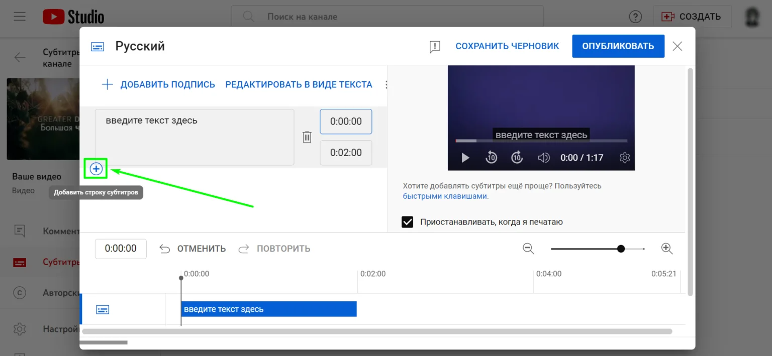создать автоматические субтитры;