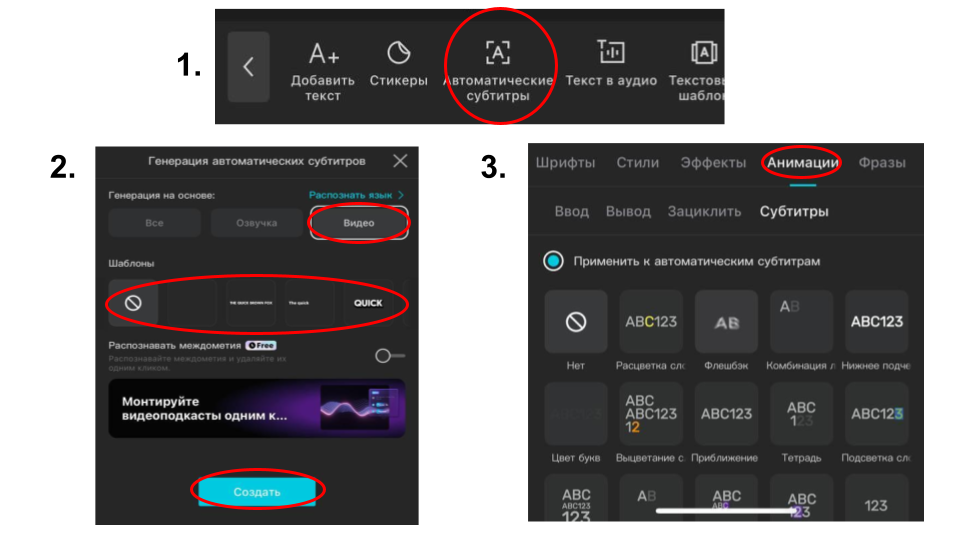 автоматически создать субтитры;