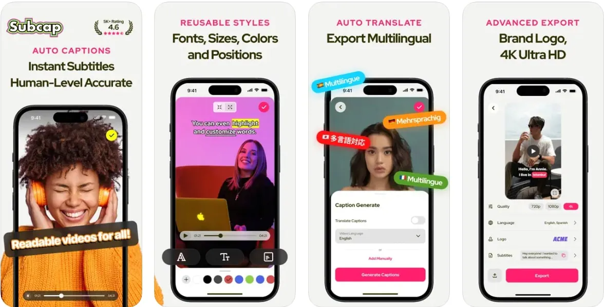 Subcap — приложение для автоматических субтитров и оформления роликов на телефоне. Оно ориентировано на создателей контента, которым нужен быстрый текст поверх видео, особенно для вертикального формата.