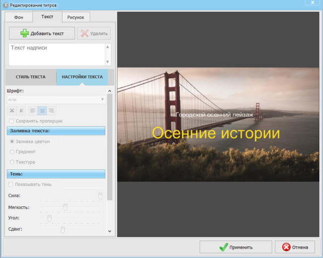 Настройте стиль текста: цвет, обводку, тень и расположение.