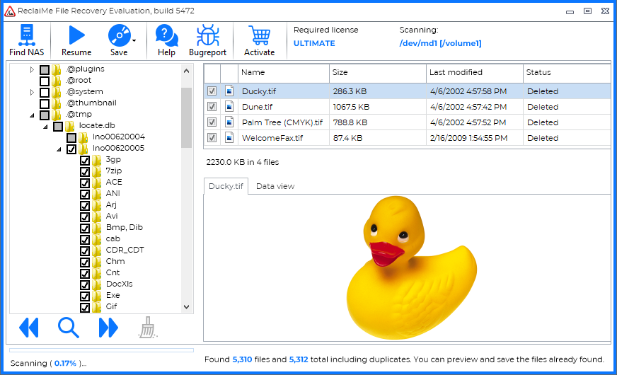 В пробной версии доступен только просмотр найденного без восстановления.