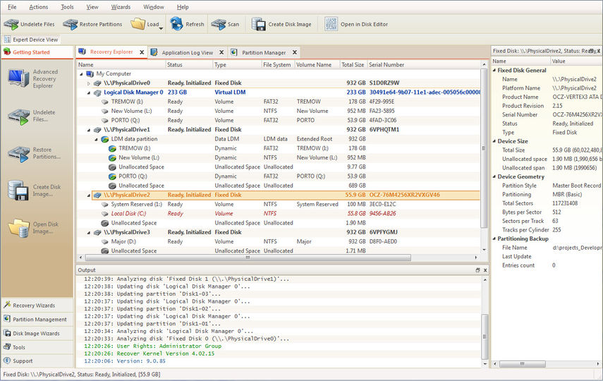 Partition Management (операции с разделами и восстановление удалённых разделов),