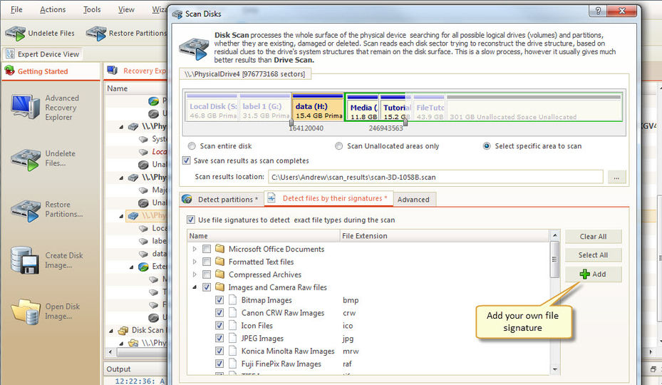 File signatures — выбор сигнатур для параллельного поиска по типам файлов во время скана.