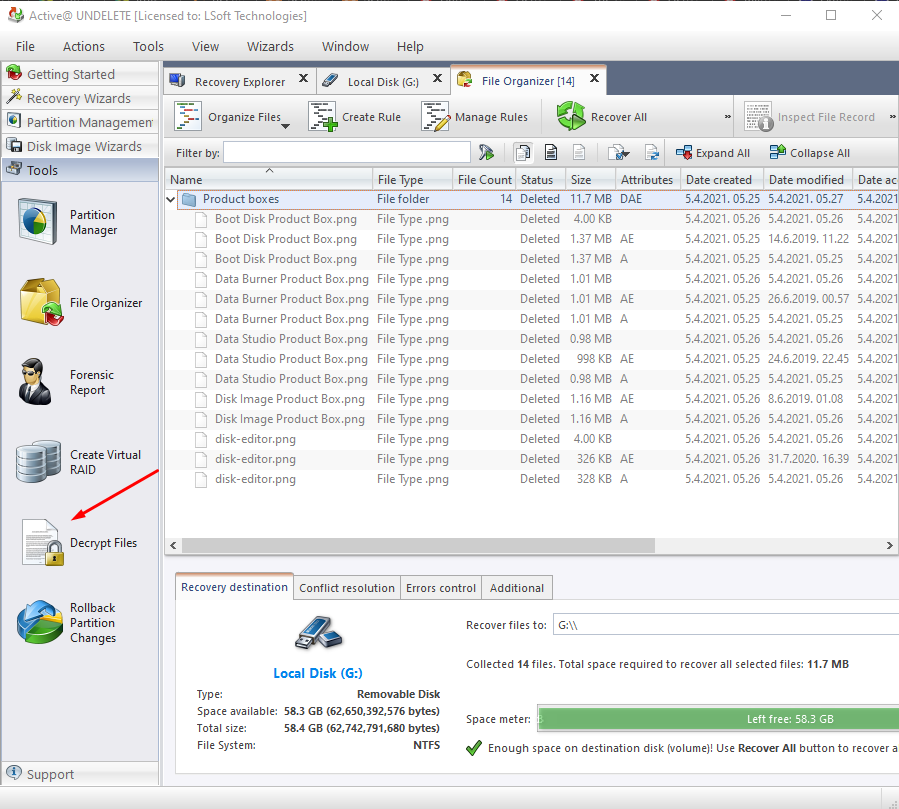 Вариант A: через мастер Recover deleted files
