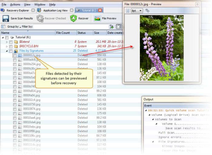 File Preview (предпросмотр перед восстановлением),