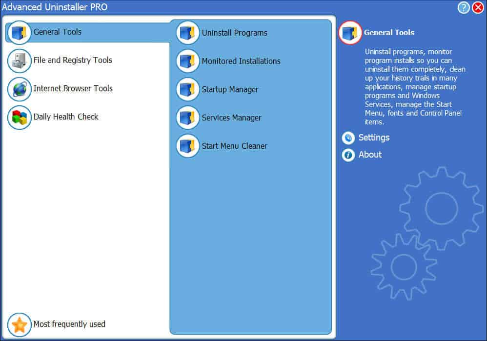 Внутри Advanced Uninstaller PRO инструменты сгруппированы по функциональным блокам. В справке они разбиты на три крупные категории: