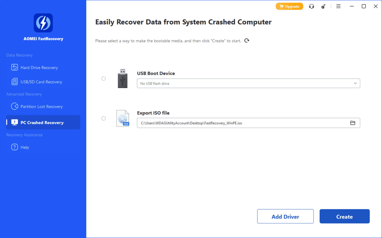 Сценарий PC Crashed Recovery встроен прямо в программу, с созданием WinPE-USB/ISO/CD и возможностью Add Drivers.