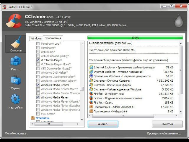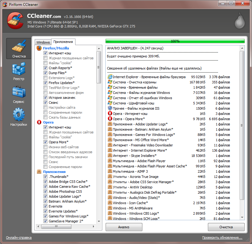 заметно расширяет список приложений и категорий очистки в CCleaner