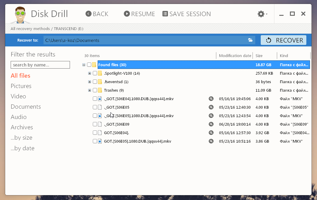Как действуют в Disk Drill: