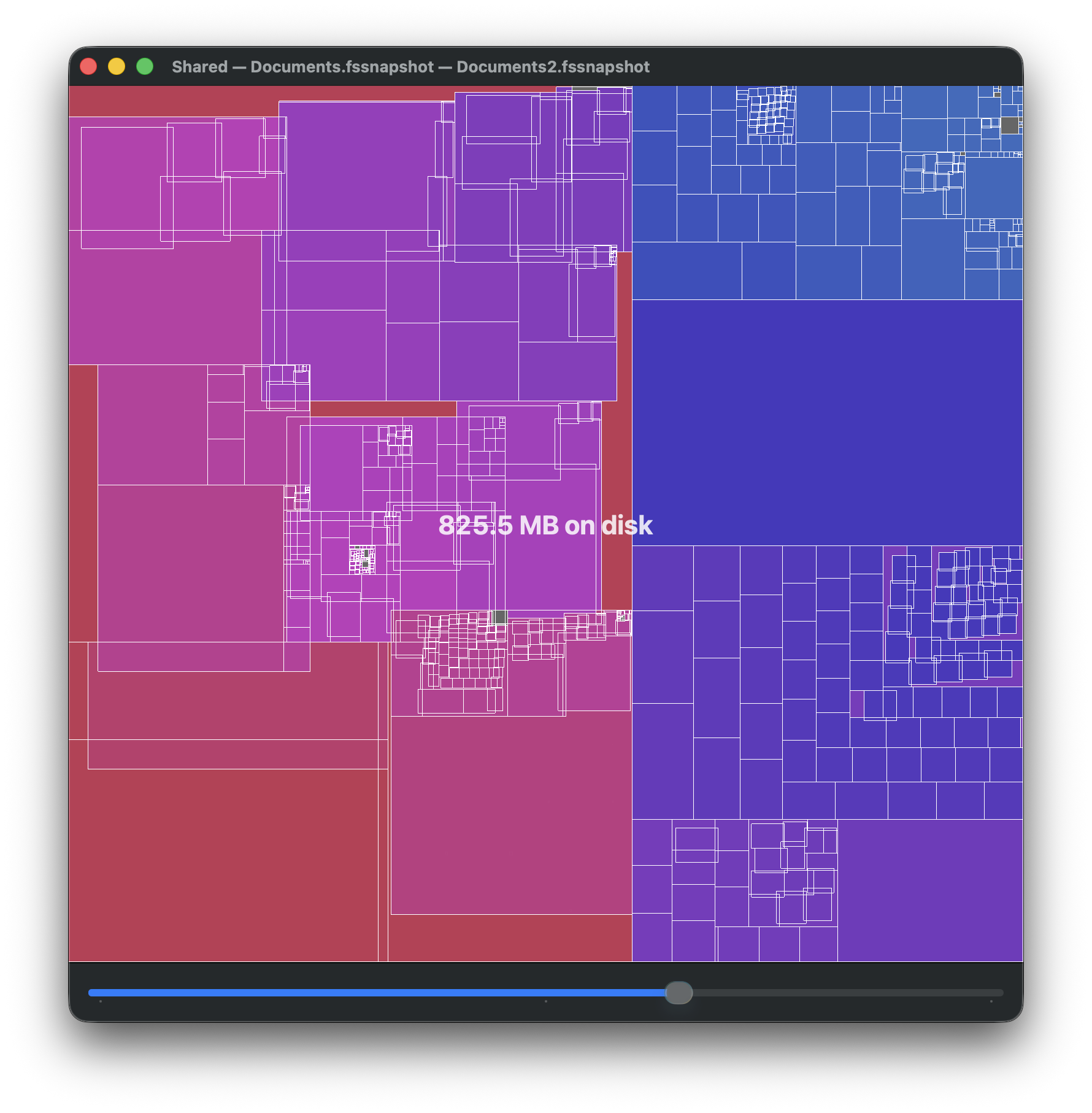 Одна из самых интересных возможностей Disk Graph — snapshots. После сканирования каталога программа умеет экспортировать снимок состояния папки. Такой снимок можно открыть позже как обычную структуру и увидеть, как каталог выглядел в момент экспорта. В Disk Graph для этого используется формат с расширением .fssnapshot, а сами снимки могут хранить атрибуты name, size, allocatedSize, creationDate и modificationDate. Сами данные сохраняются в JSON или TSV.