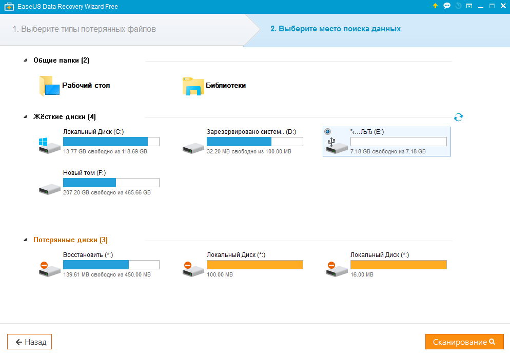 4.2. Первый экран: выбор места потери файлов