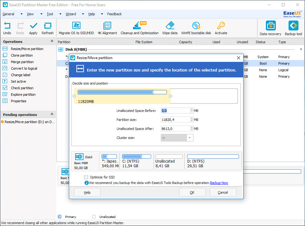 В большинстве случаев причина — свободное место находится не рядом. EaseUS Partition Master решает это за счёт: