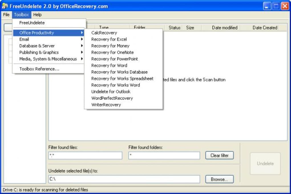 Заголовок окна: FreeUndelete (встречается указание «by OfficeRecovery.com» и номер версии).