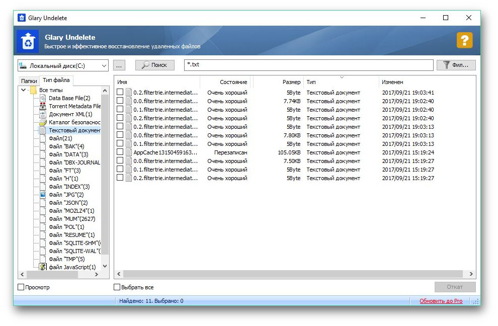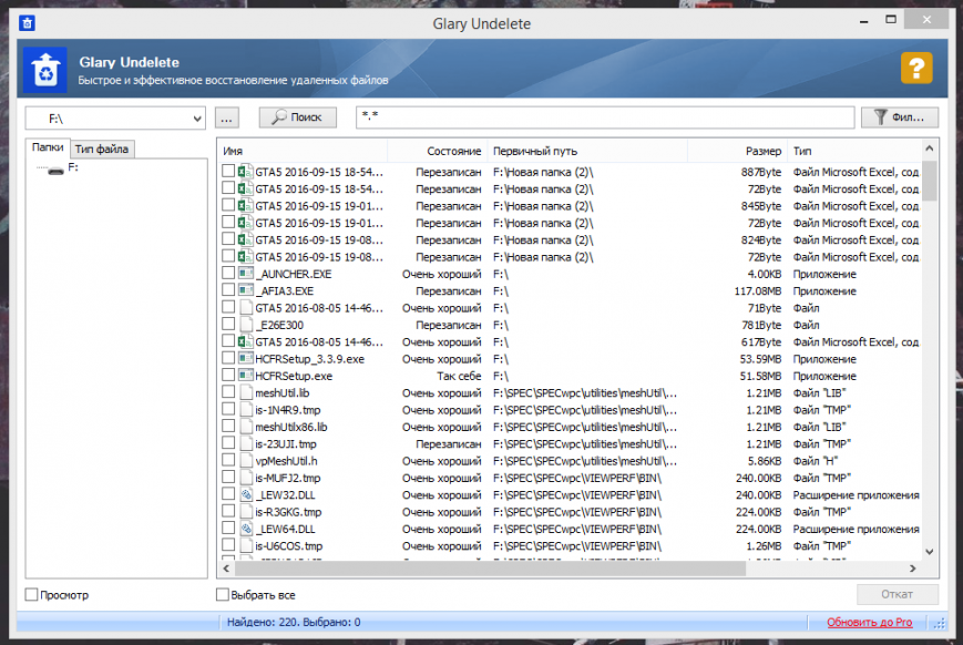 Что можно сделать в рамках Glary Undelete: