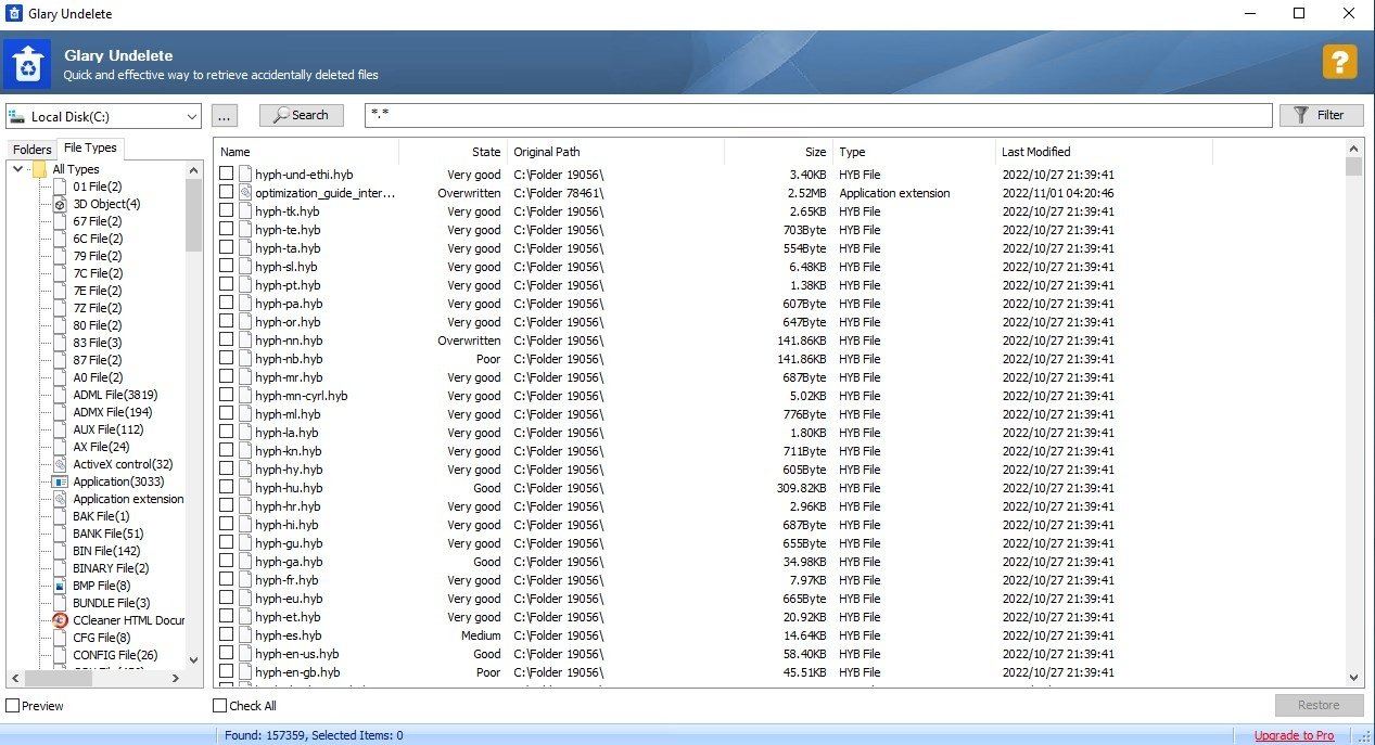 Glary Undelete — бесплатная утилита для восстановления удалённых данных, рассчитанная на быстрый сценарий: выбрать диск или папку, запустить поиск, отфильтровать список и вернуть нужные файлы в выбранное место. Программа показывает вероятность успешного восстановления для каждого найденного объекта и позволяет быстро сузить результаты по типам и папкам, чтобы не разбираться в длинном списке служебных следов и временных данных.