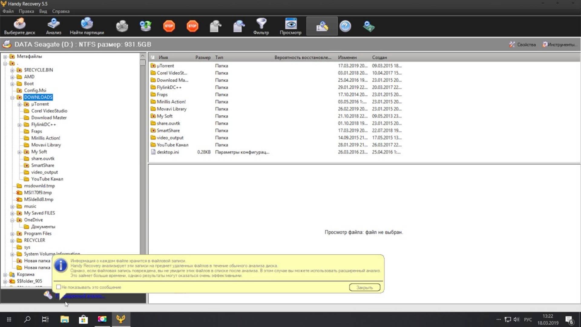Отдельно полезно понимать, что Handy Recovery работает в логике файловой системы: в «простых» случаях он вытаскивает удалённое по записи в таблицах (например, NTFS), а в «сложных» — переходит к расширенному анализу, который уже ищет контент по типам/сигнатурам и складывает найденное в специальную папку.