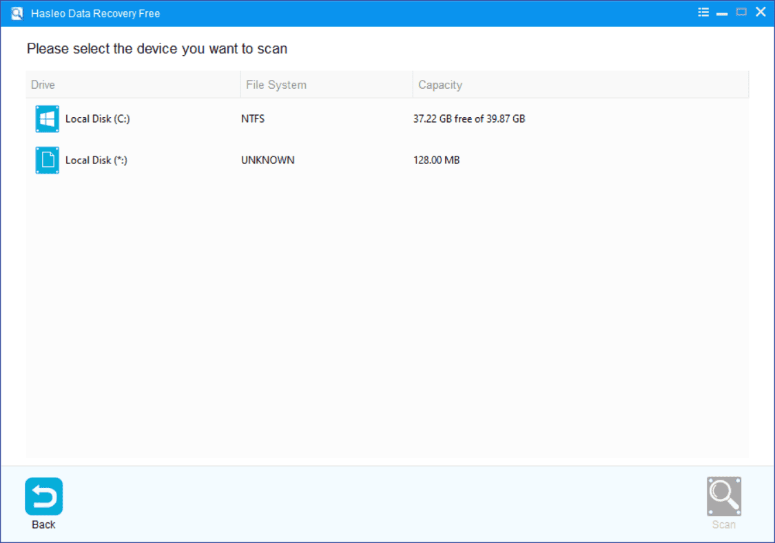 С точки зрения пользователя это важный момент: Hasleo не заставляет «собирать профиль» восстановления — выбор режима уже определяет стратегию, а Scan запускает поиск по выбранной локации.