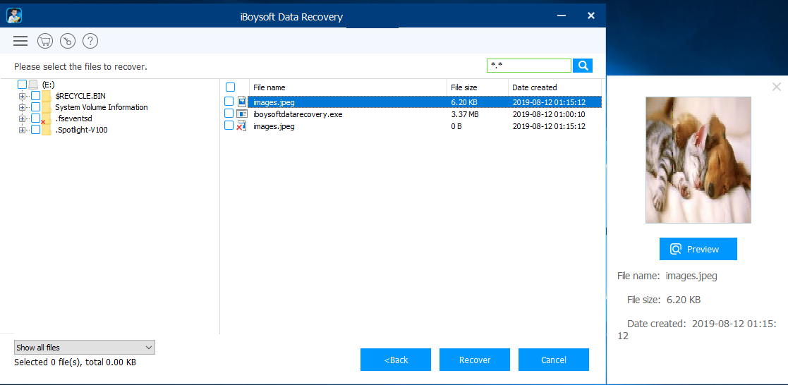 Preview→Recover→OK.