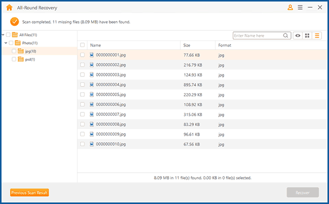 После скана AnyRecover показывает результаты в двух привычных видах: